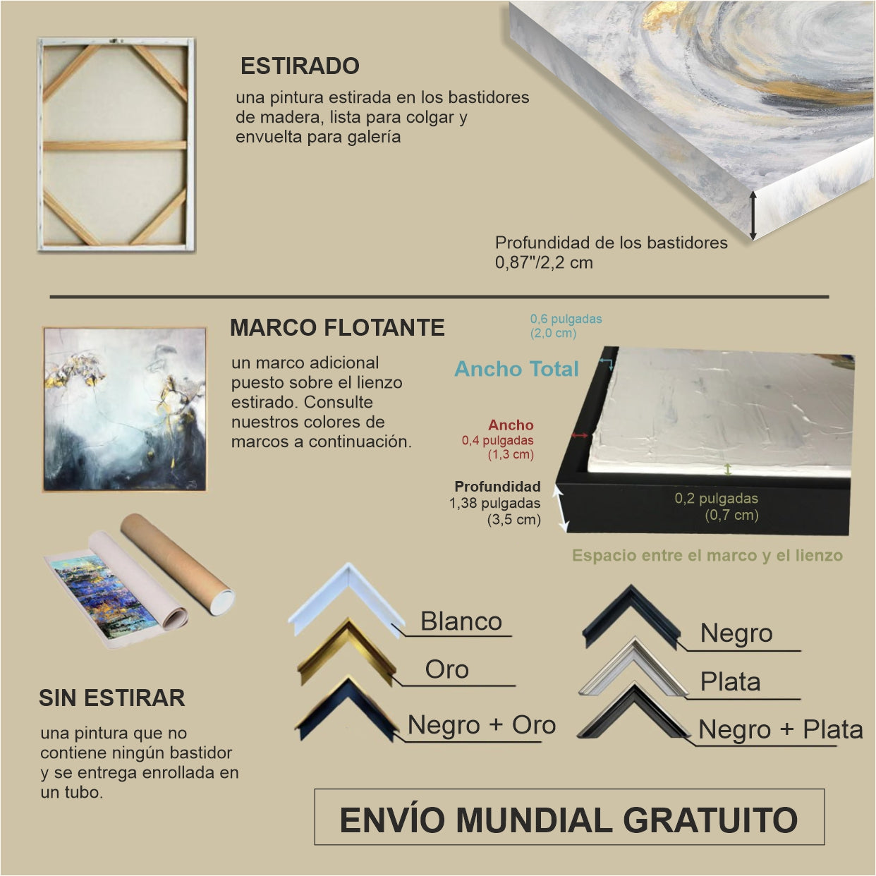 Sí, podemos crear obras de arte únicas o personalizar las actuales en función de sus requisitos y preferencias específicos, como el tema, el tamaño, la orientación o la combinación de colores. Algunas obras de arte originales no pueden modificarse.