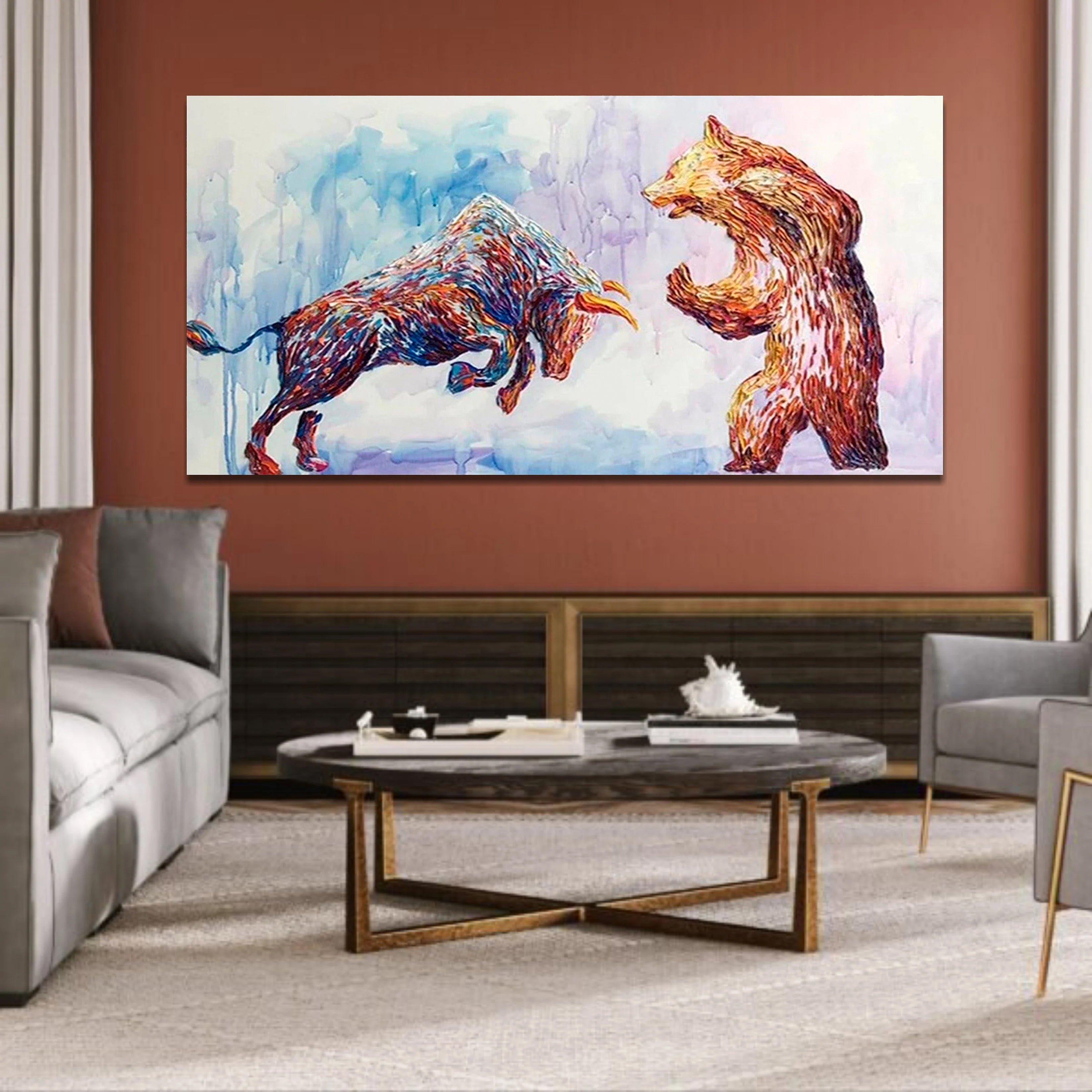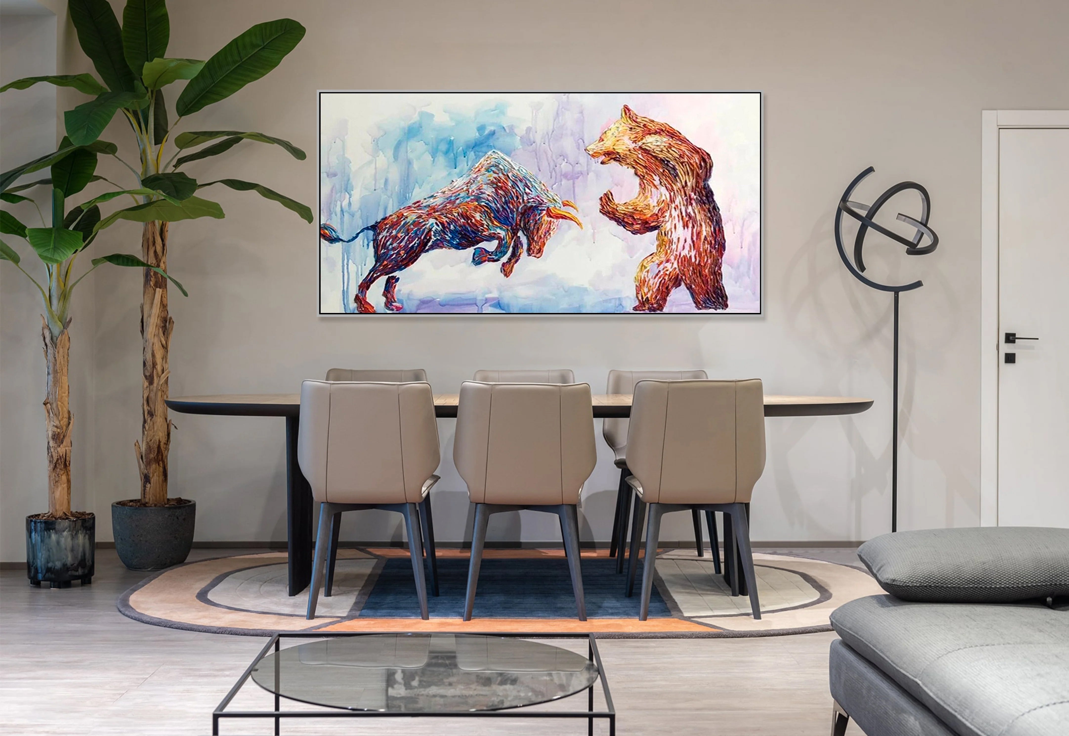 Sí, podemos crear obras de arte únicas o personalizar las actuales en función de sus requisitos y preferencias específicos, como el tema, el tamaño, la orientación o la combinación de colores. Algunas obras de arte originales no pueden modificarse.